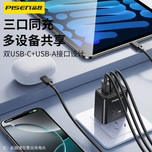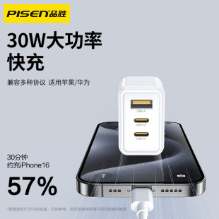 品胜充电头30W氮化镓三口快充多口充电器适用苹果16ProMax手机iPhone15plus14华为安卓PD插头type数据线套装