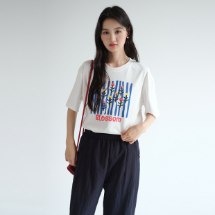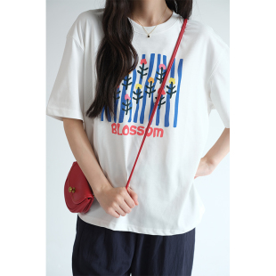 基础款 蓝若水大码 T恤胖mm夏装 亲肤舒适印花短袖 百搭宽松上衣 女装