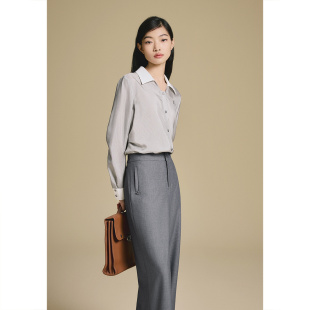 女长袖 诗篇专选条纹衬衫 职业通勤叠穿衬衣女2025春款 真丝