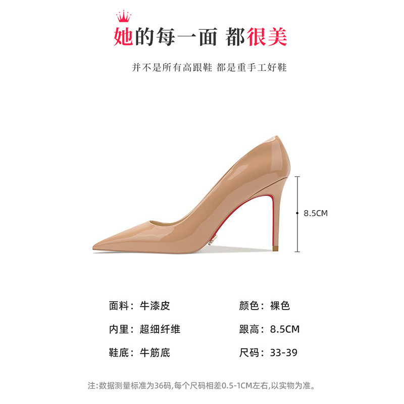 10厘米防水台高跟鞋 浅口8 女细跟圆头职业工作COS万用性感漆皮单鞋