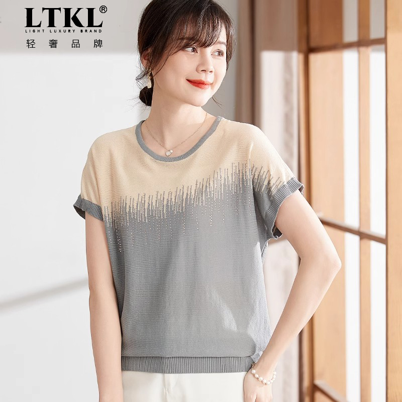 薄款 妈妈夏装 中老年夏季 T恤女洋气小衫 宽松舒适针织上衣 冰丝短袖