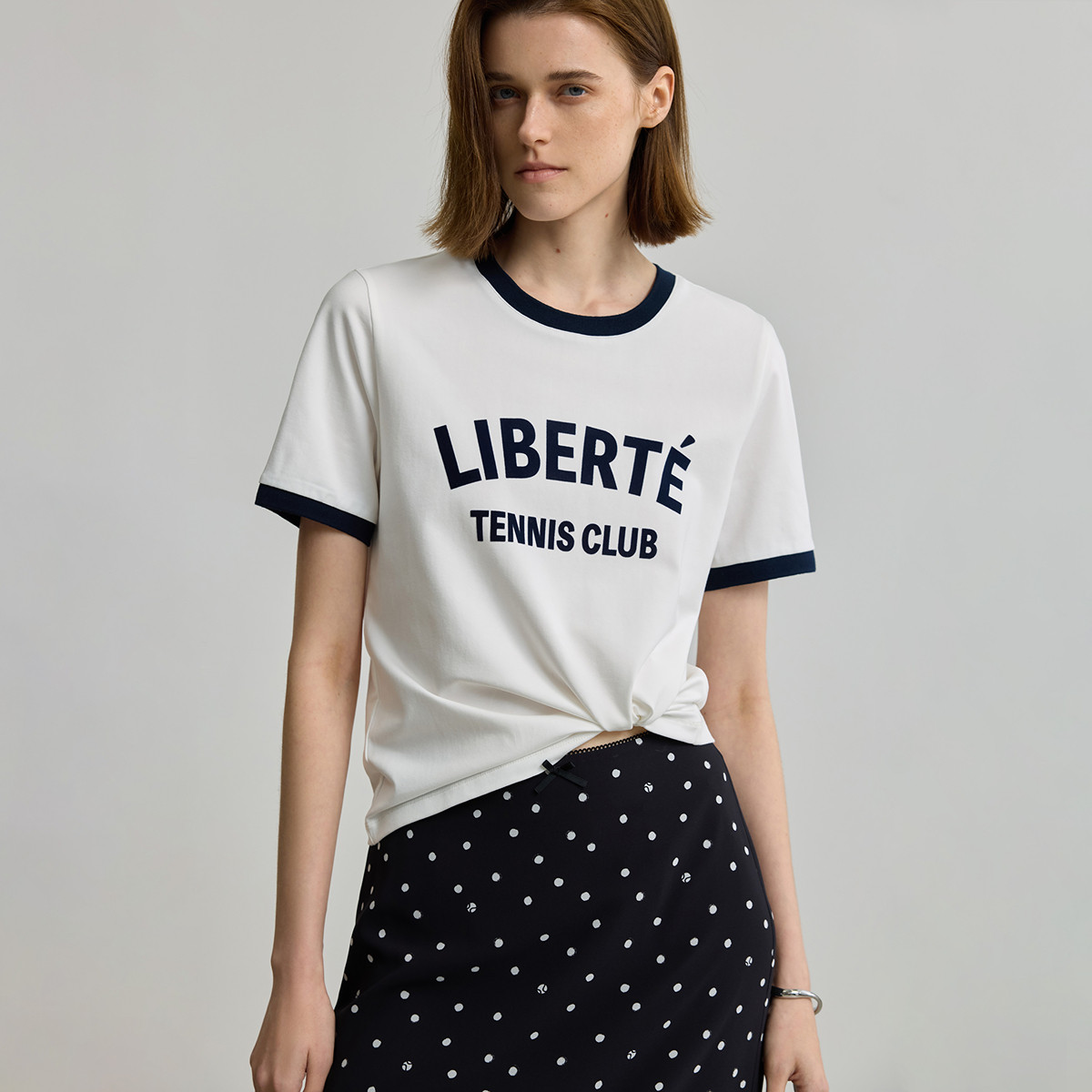 T恤女 复古字母印花宽松休闲百搭通勤圆领短袖 LILY2026夏新款 美式