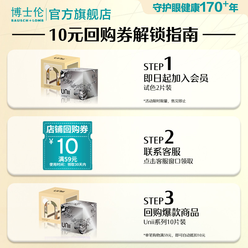 近视隐形眼镜Unii甜酷风试戴 博士伦美瞳日抛2片装 淘宝秒杀