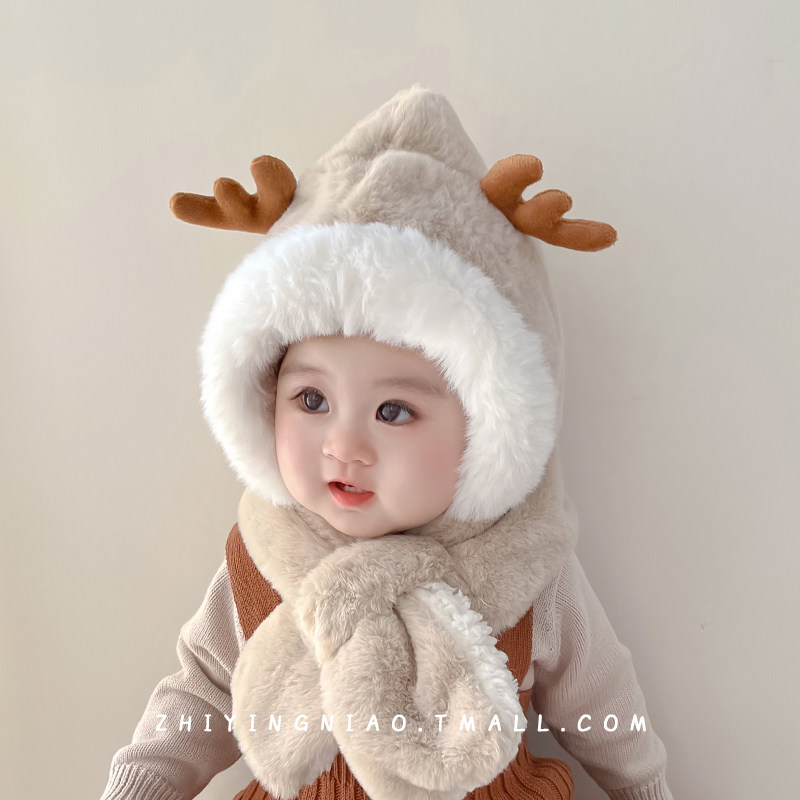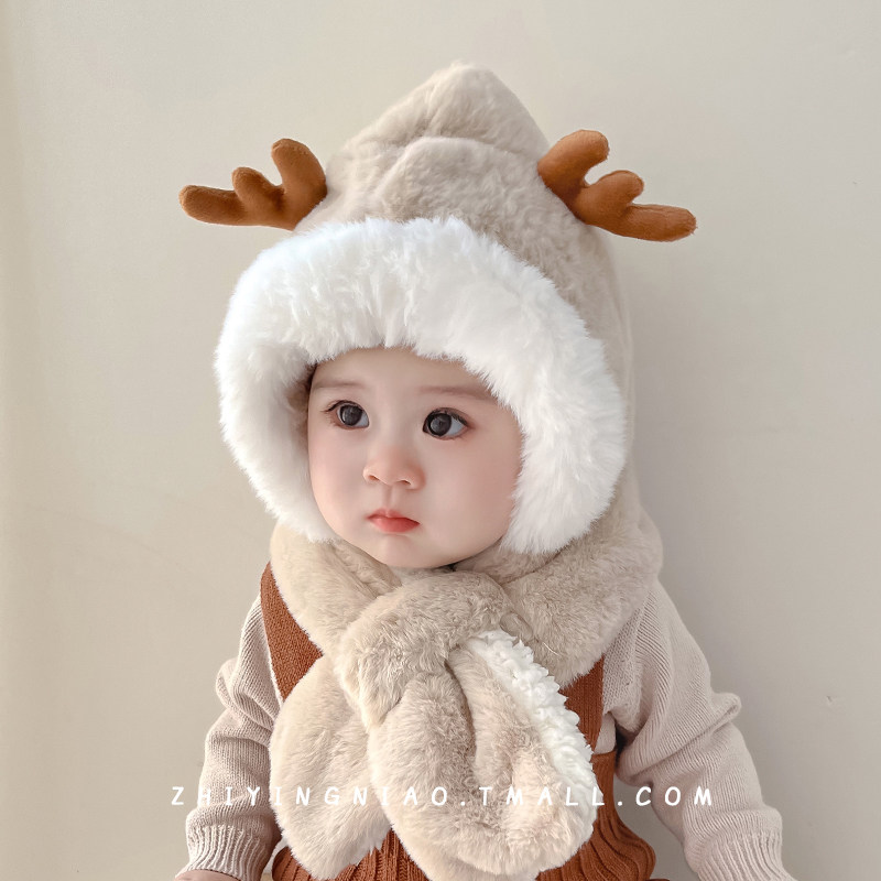儿童帽子秋冬季 保暖加厚毛线帽男女宝宝防风围脖口罩一体护耳帽潮