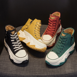 真皮增高休闲运动鞋 ZFCQ单鞋 女款 厚底红色高帮老爹鞋 2026春秋新款