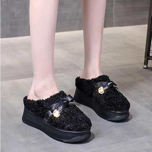 羊羔毛绒包头半拖鞋 子2023新款 女外穿秋冬棉拖鞋 增高厚底毛毛拖鞋