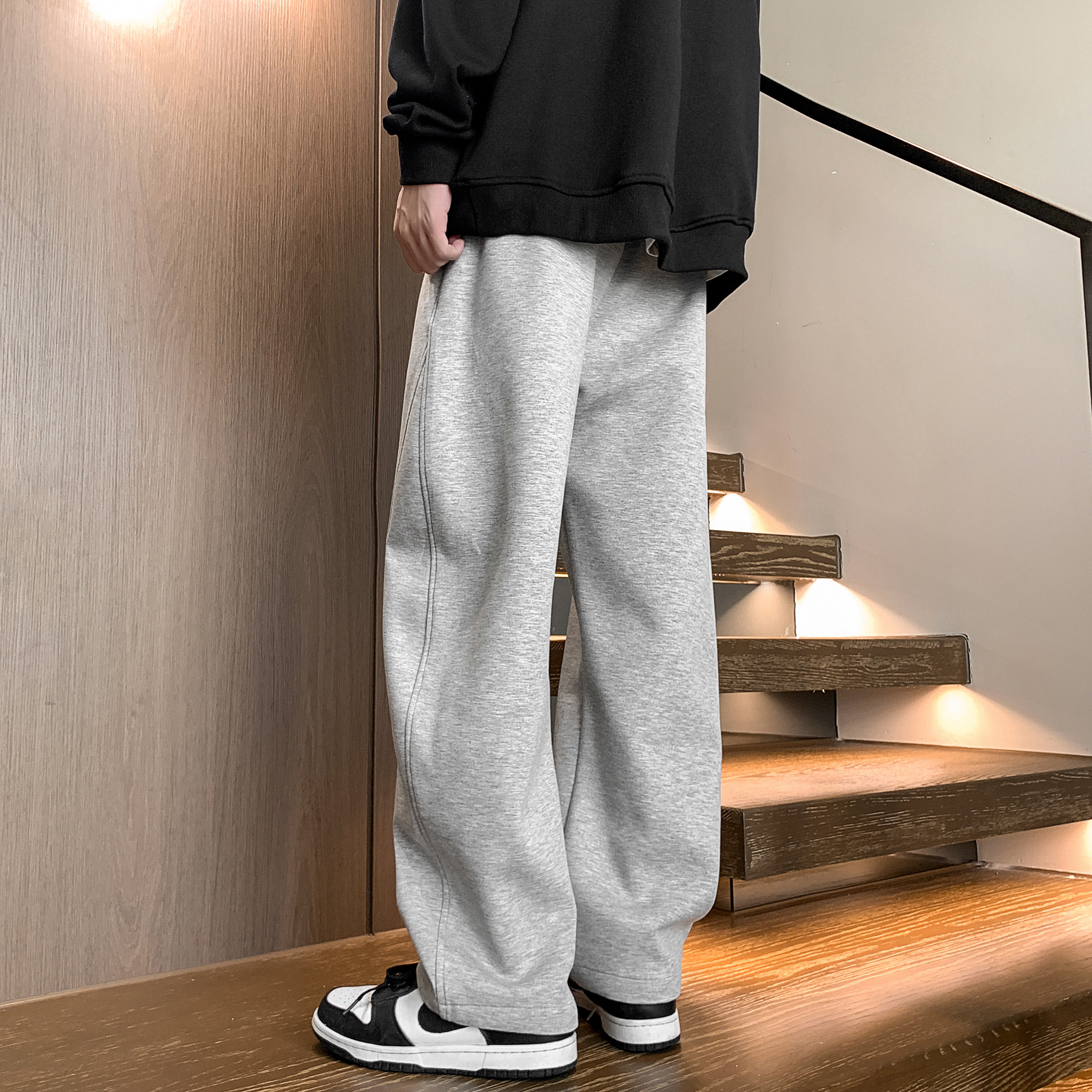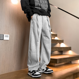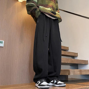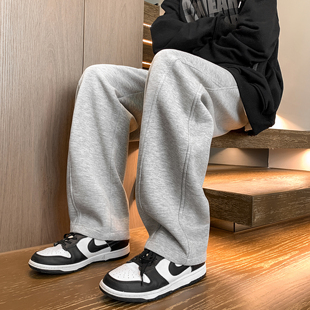 休闲裤 重磅卫裤 弯刀裤 子秋冬加绒厚直筒高街痞帅宽松运动裤 男生裤