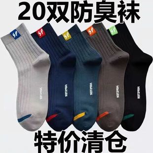 100双装 吸汗秋冬袜男防臭透气中筒防滑袜耐穿劳保袜长袜字母运动