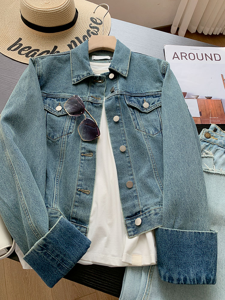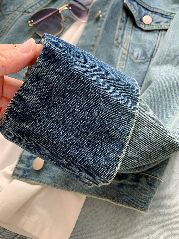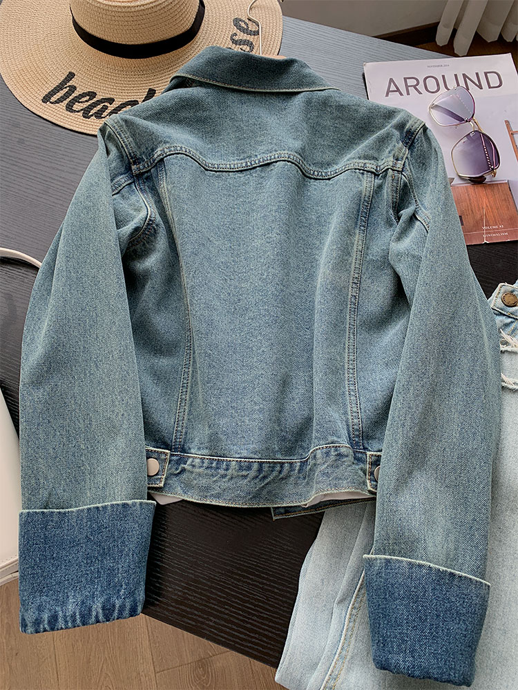 牛仔夹克短款 设计感水洗做旧复古修身 外套上衣女 柜1150 出K单