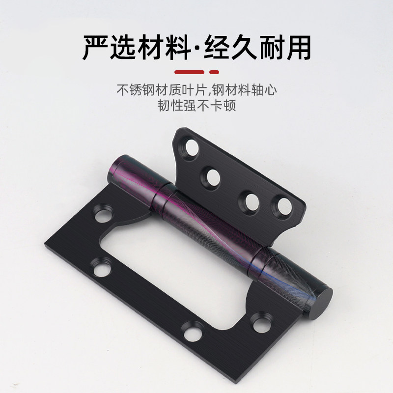不锈钢4寸子母合页房门卧室内木免开槽蝴蝶静音金黑色字母5寸铰链