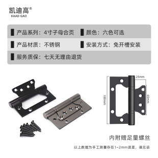 加厚不锈钢304子母合页4寸免开槽铰链静音室内房木门卧室字母折页