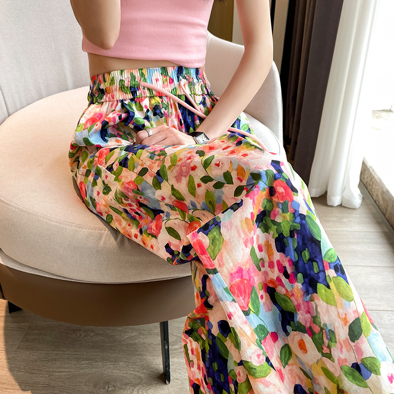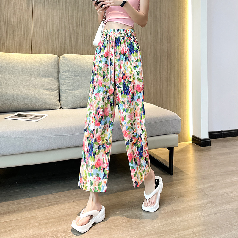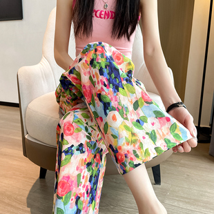 宽松直筒九分潮流海边休闲沙滩裤 花裤 高腰阔腿裤 薄款 显瘦 子女夏季