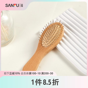 三福秀色物语榉木钢针按摩梳 便携木质化妆梳气囊梳子477765