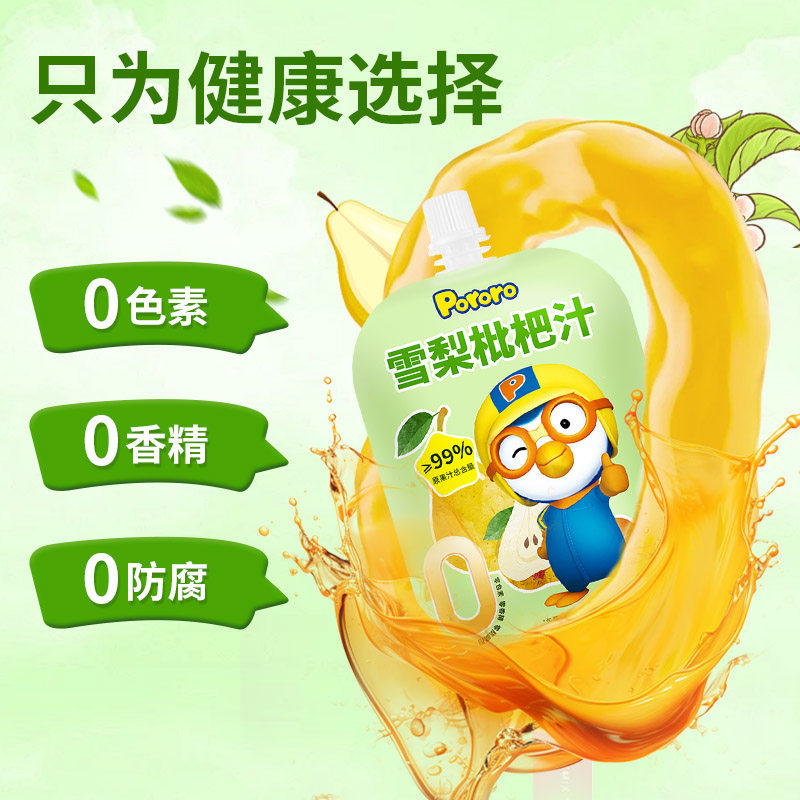 1袋开袋即饮 啵乐乐Pororo枇杷雪梨汁儿童成人饮料105g 尝鲜装