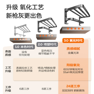 枪灰色毛巾架卫生间免打孔折叠浴室置物架壁挂式 厕所太空铝浴巾架