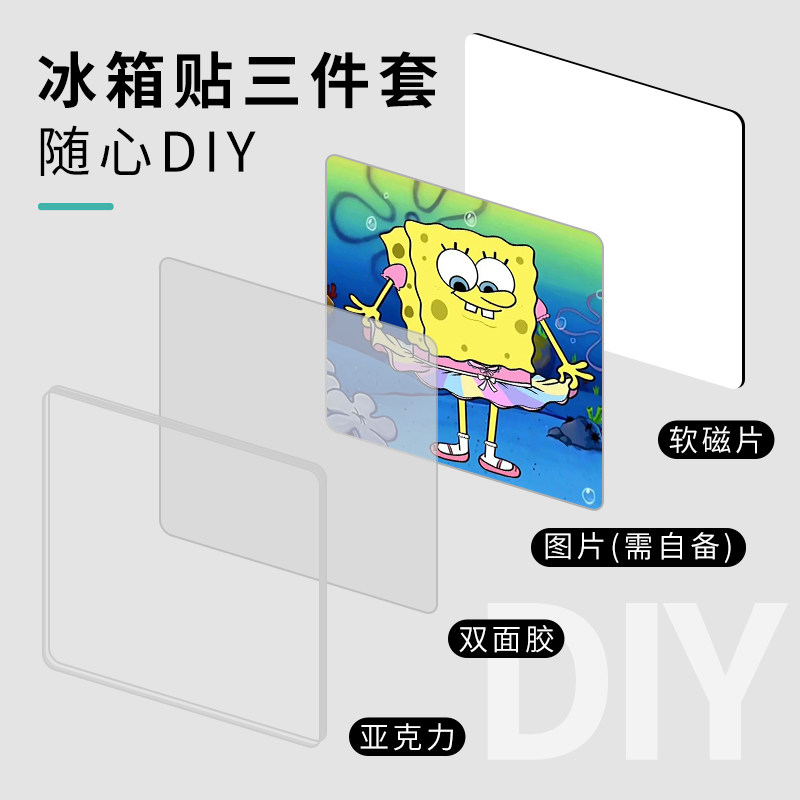 手工磁吸冰箱贴自制透明方砖ins正方形带磁片亚克力diy材料包卡通