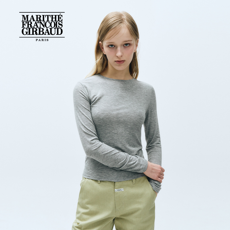 上衣 潮流女士圆领舒适休闲纯色打底衫 25年夏韩系 T恤 MARITHE长袖
