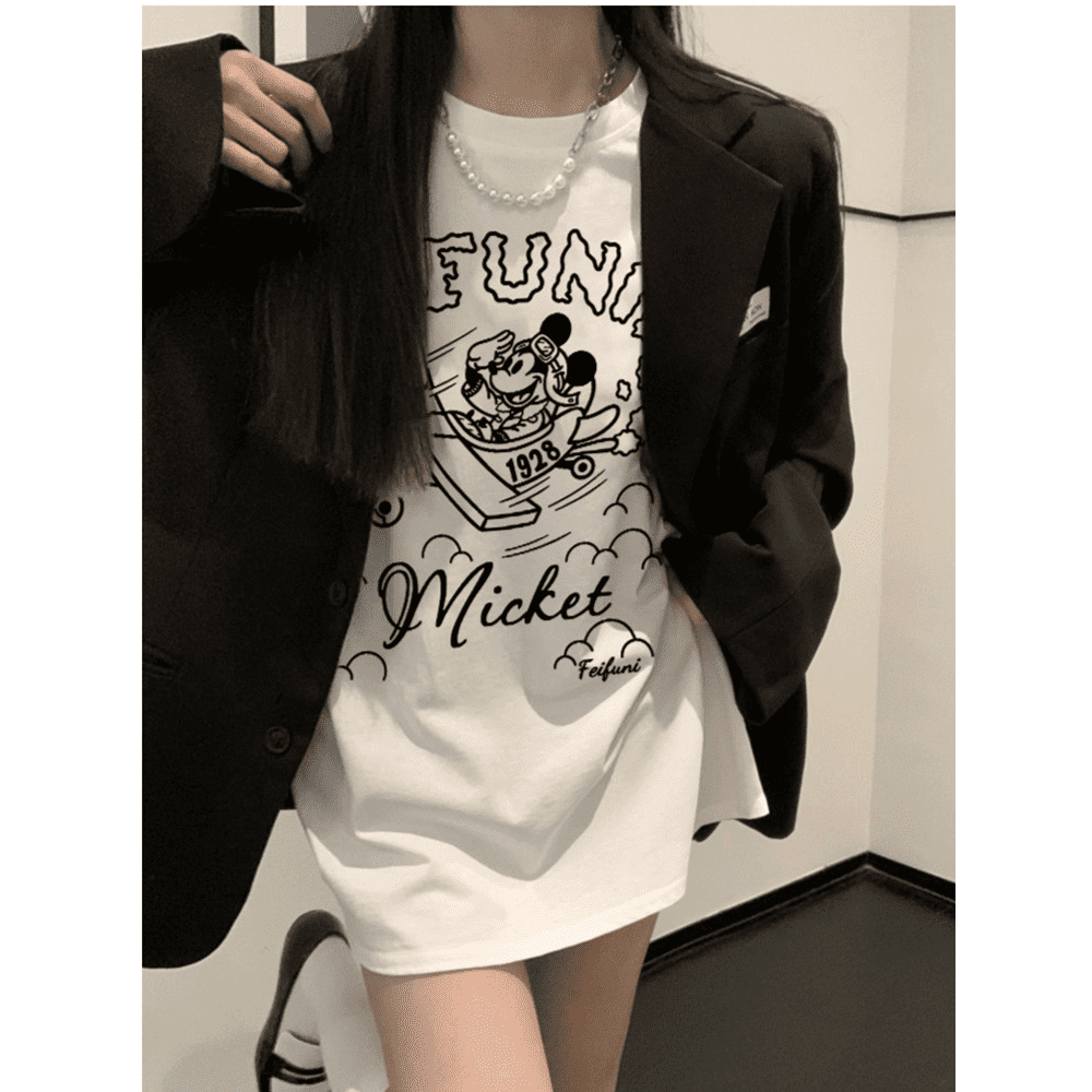 韩版 薄荷曼波t恤女短袖 爆款 2025新款 宽松米奇印花上衣潮T 纯棉夏季