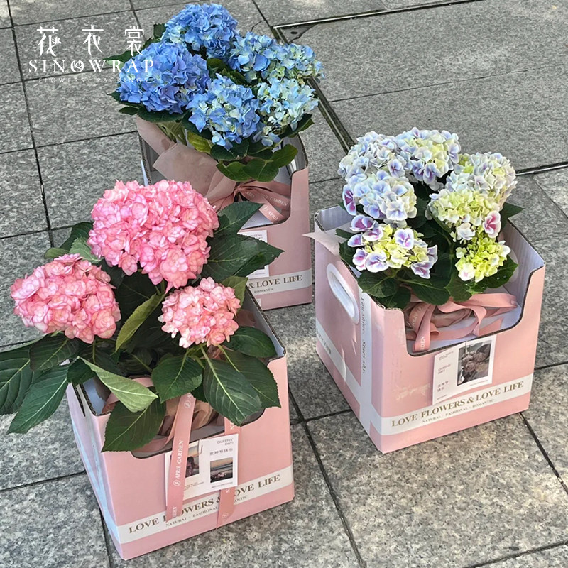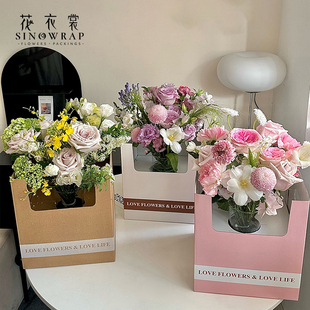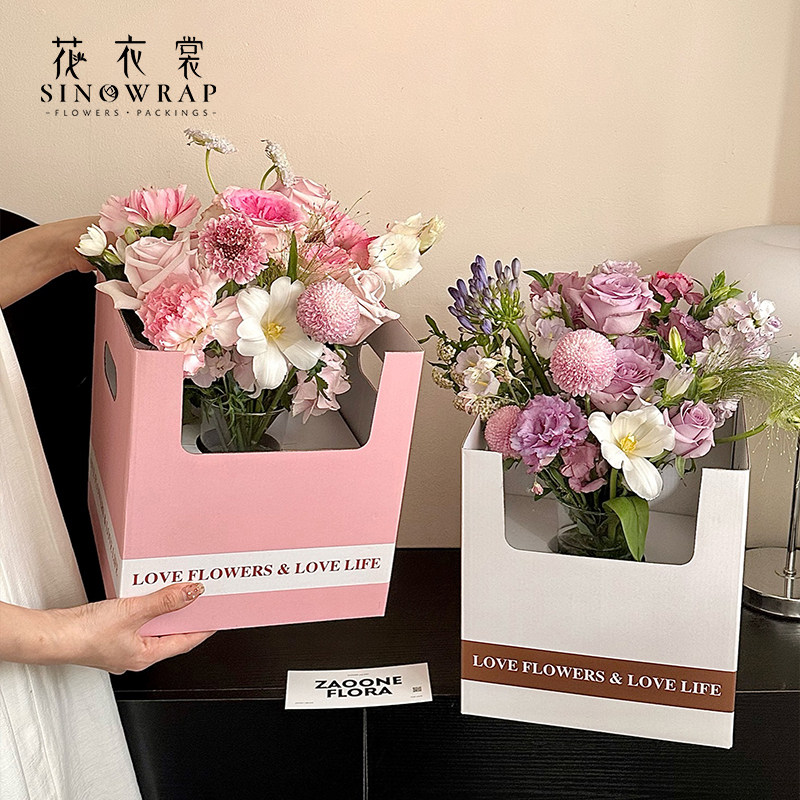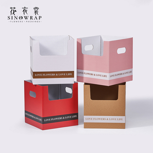 鲜花包装 饰盆栽插花盒礼物包装 花 简约双侧手提花篮盒装 花衣裳