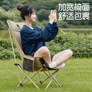骆驼户外折叠椅露营月亮椅沙滩凳子椅子高背室内居家办公午休躺椅
