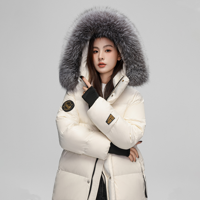狐狸毛 30℃极寒保暖外套厚款 2024年鸭宝宝羽绒服男女同款 中长款