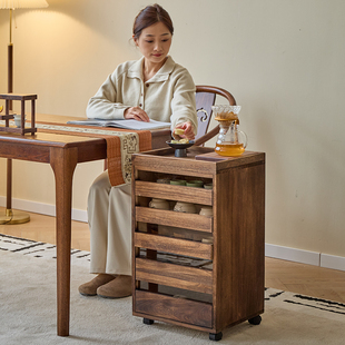 新中式 餐边柜实木斗柜藤编客厅边柜茶柜茶水柜卧室床头收纳柜整装