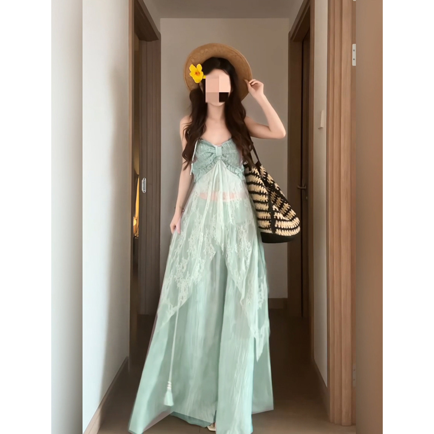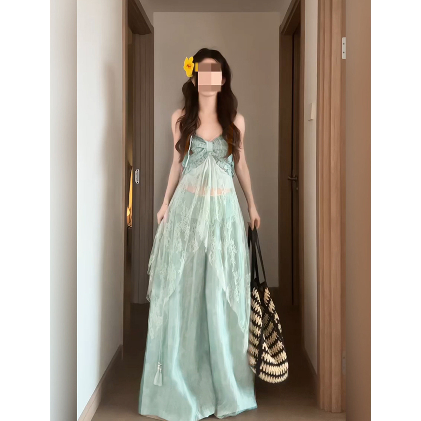 套装 宽松阔腿长裤 微胖纯欲度假风蕾丝拼接吊带上衣女25年夏季 XZY