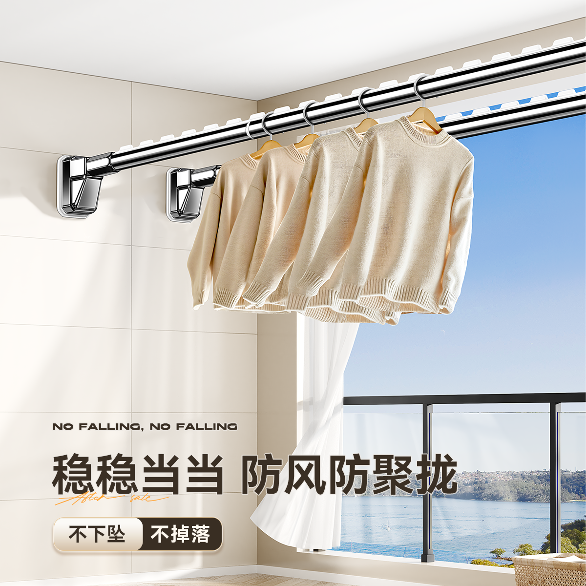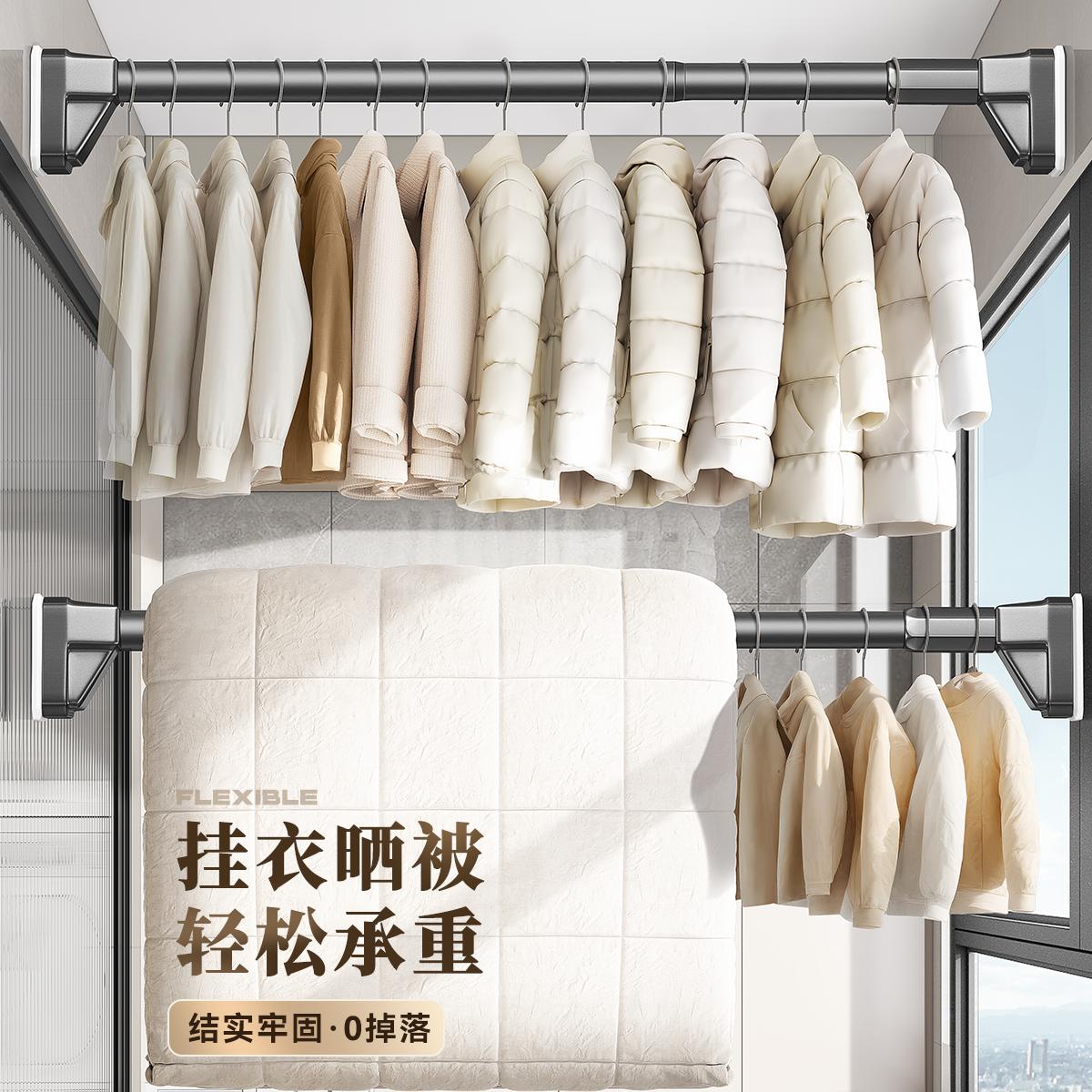 免打孔伸缩晾衣杆强力承重支撑杆侧面装 晾衣架神器 阳台墙上固定式