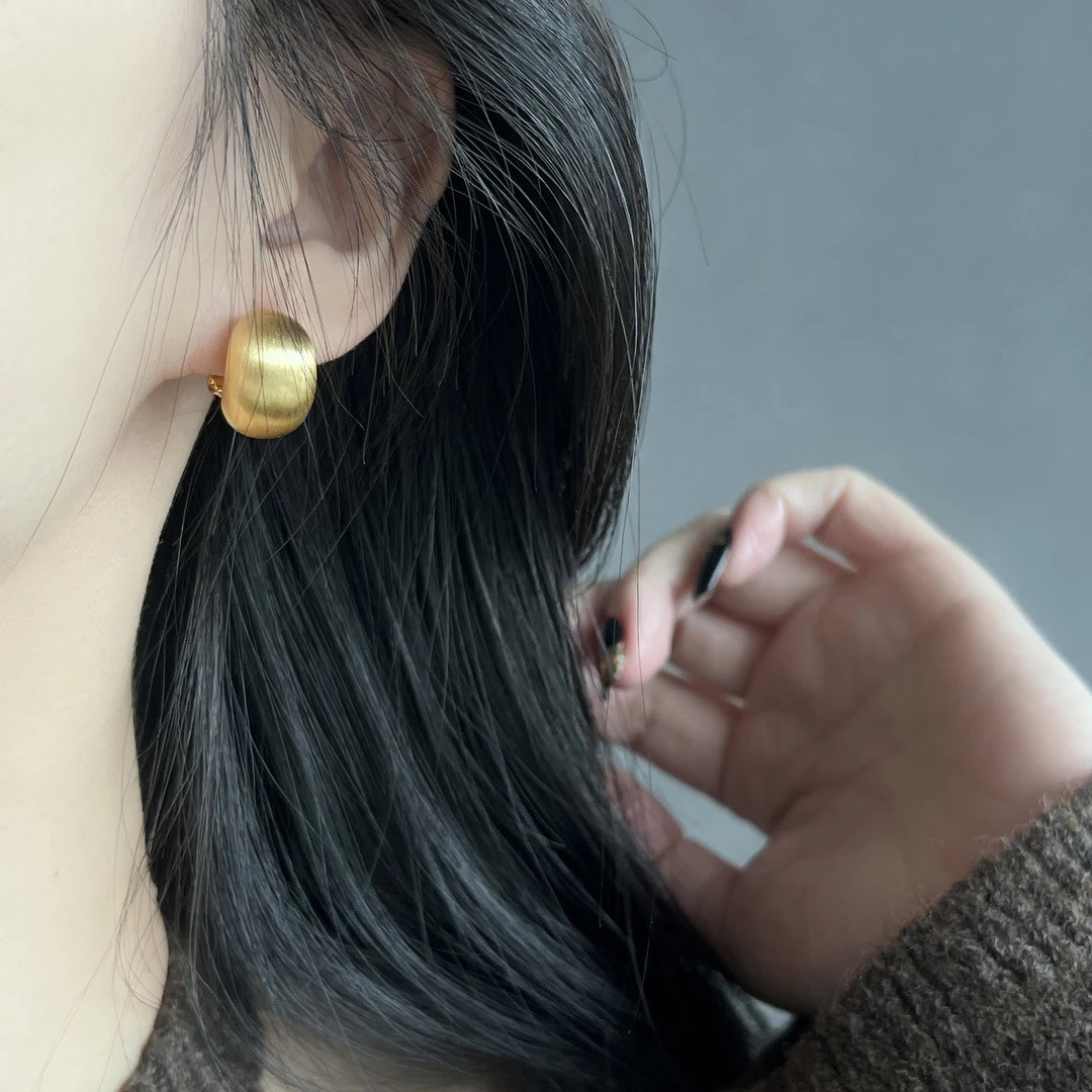 高级感圆圈耳圈耳环耳夹无耳洞小众独立设计师金属褶皱夸张耳钉