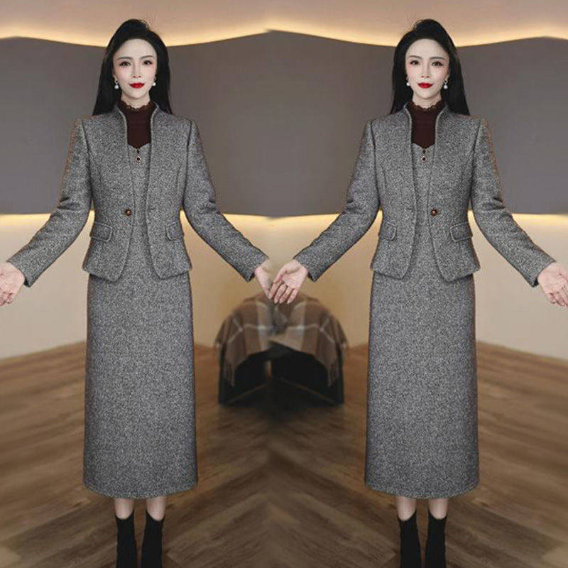 松紧腰半身裙中老年女气质毛衣套装 时尚 真三件装 针织衫 洋气妈妈装