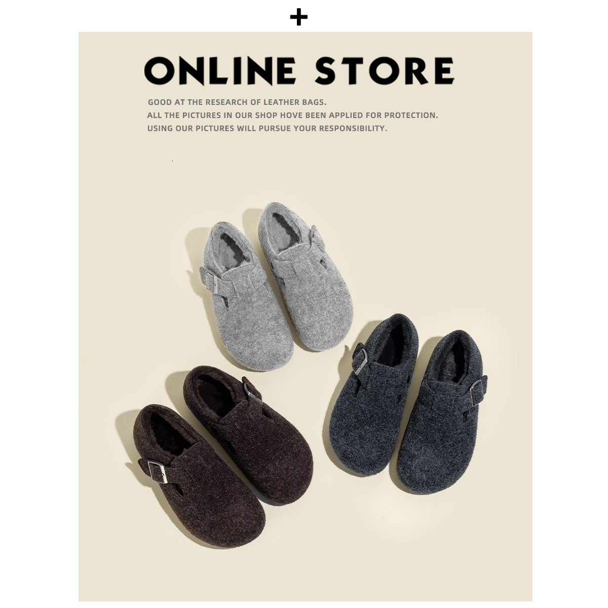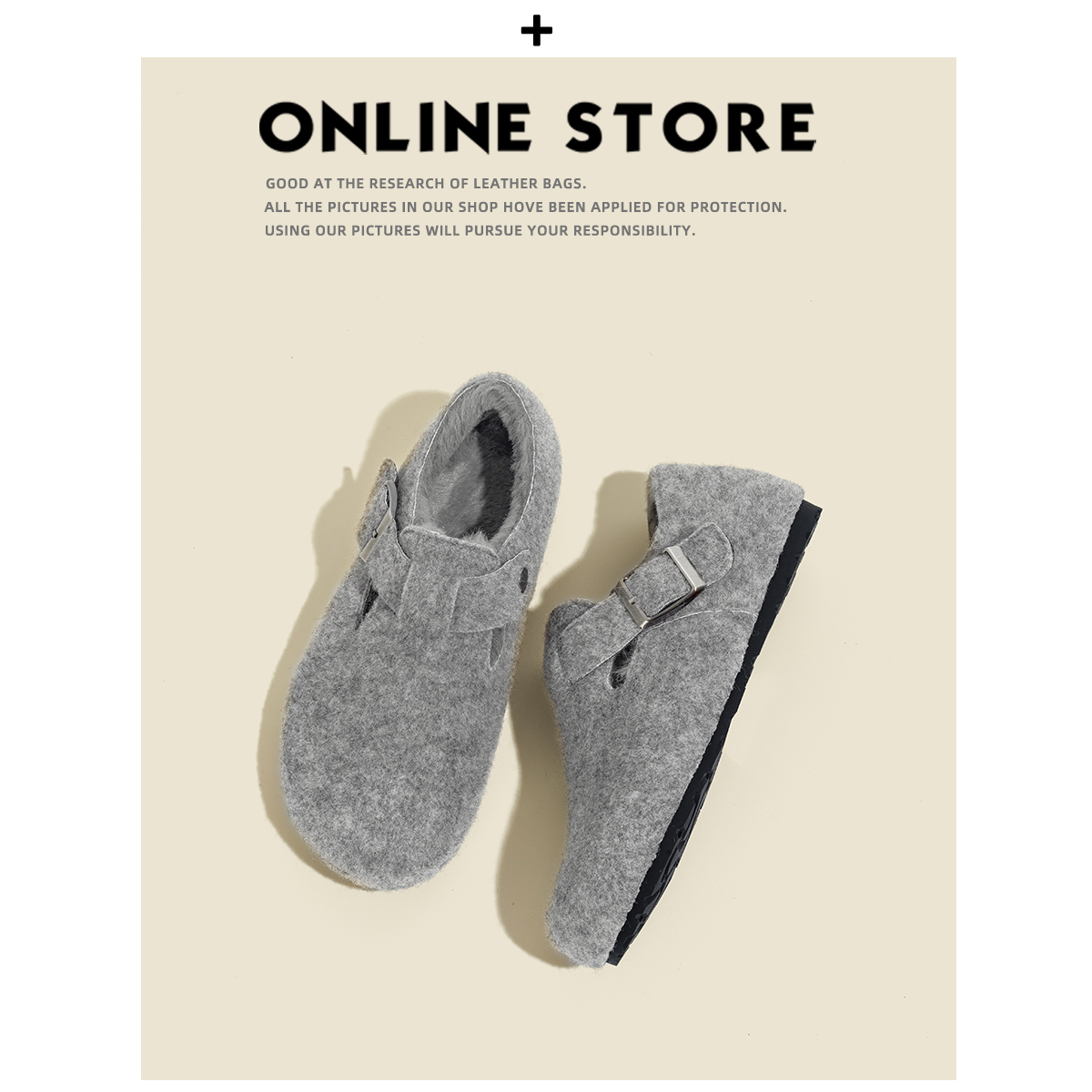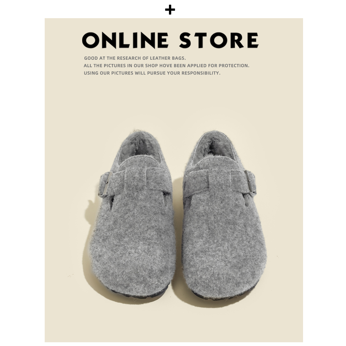 女秋冬季 加绒勃肯鞋 2025新款 平底灰色毛毛鞋 雪地靴 不二鞋 棉鞋 坊