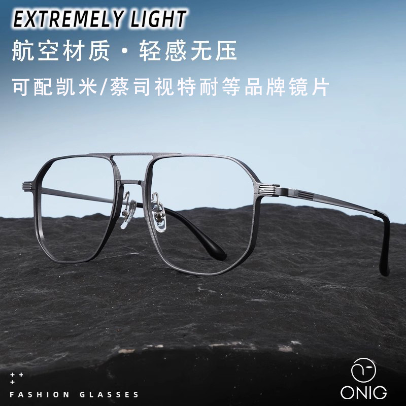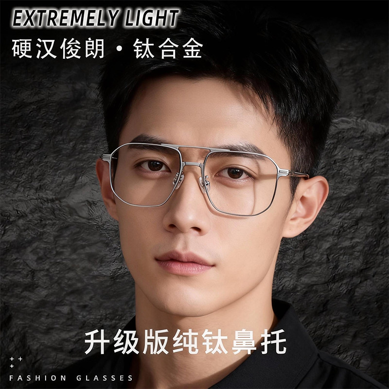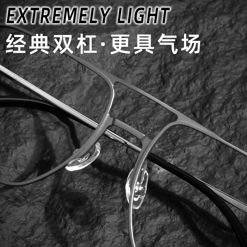 双梁近视眼镜框男大框大脸可配度数变色防蓝光飞行员男士 钛合金