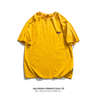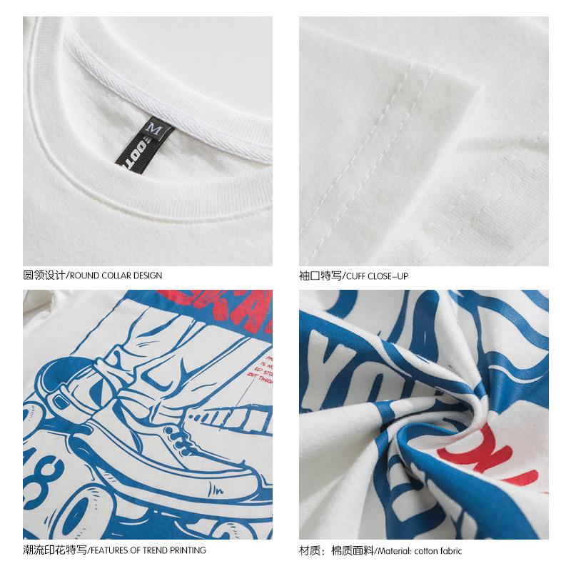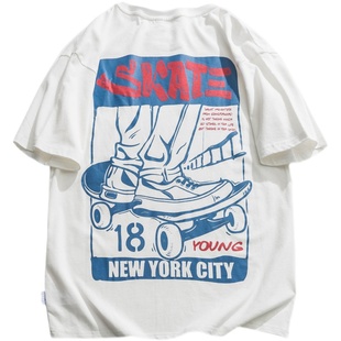 宽松纯棉原创卡通圆领字母休闲体恤港风tee t恤男夏季 美式 潮牌短袖