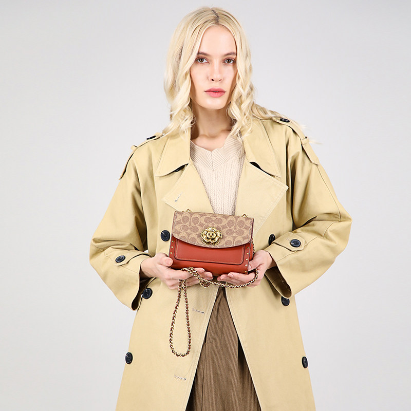 蔻驰女Parker山茶花高级感时尚 COACH 保证 链条单肩斜挎包 正品
