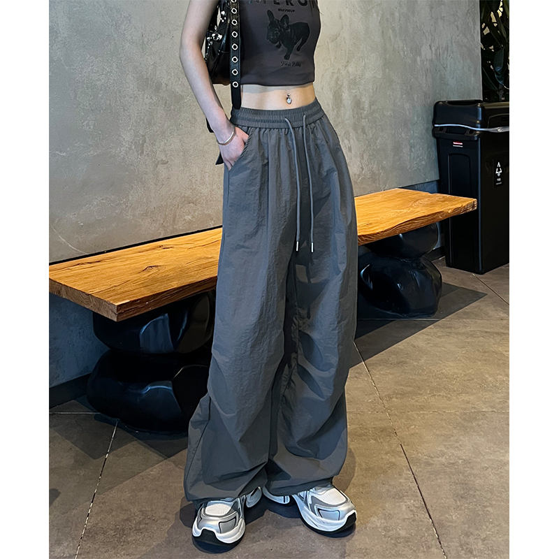 女夏季 薄款 2024新款 灰色美式 冰丝伞兵运动裤 裤 休闲宽松阔腿裤 工装