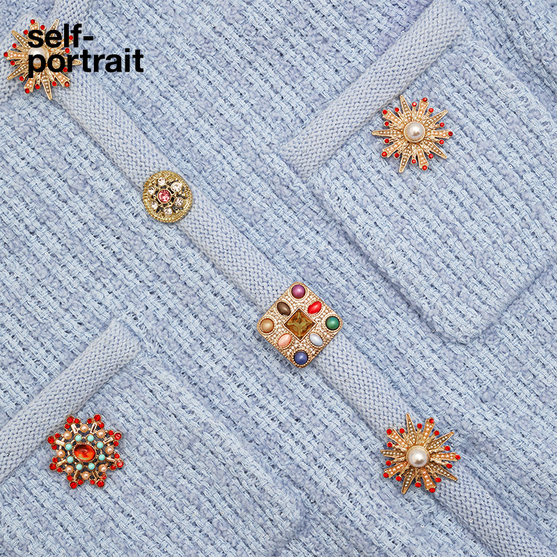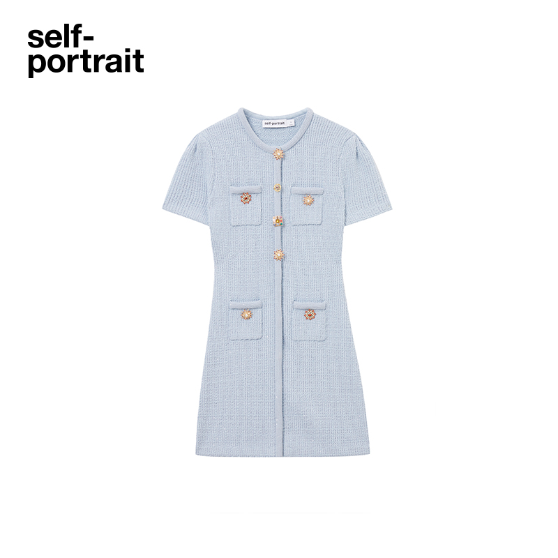 连衣裙 早秋薄雾蓝纽扣设计感针织短袖 self portrait