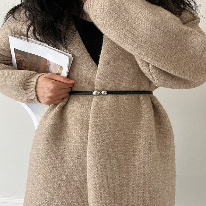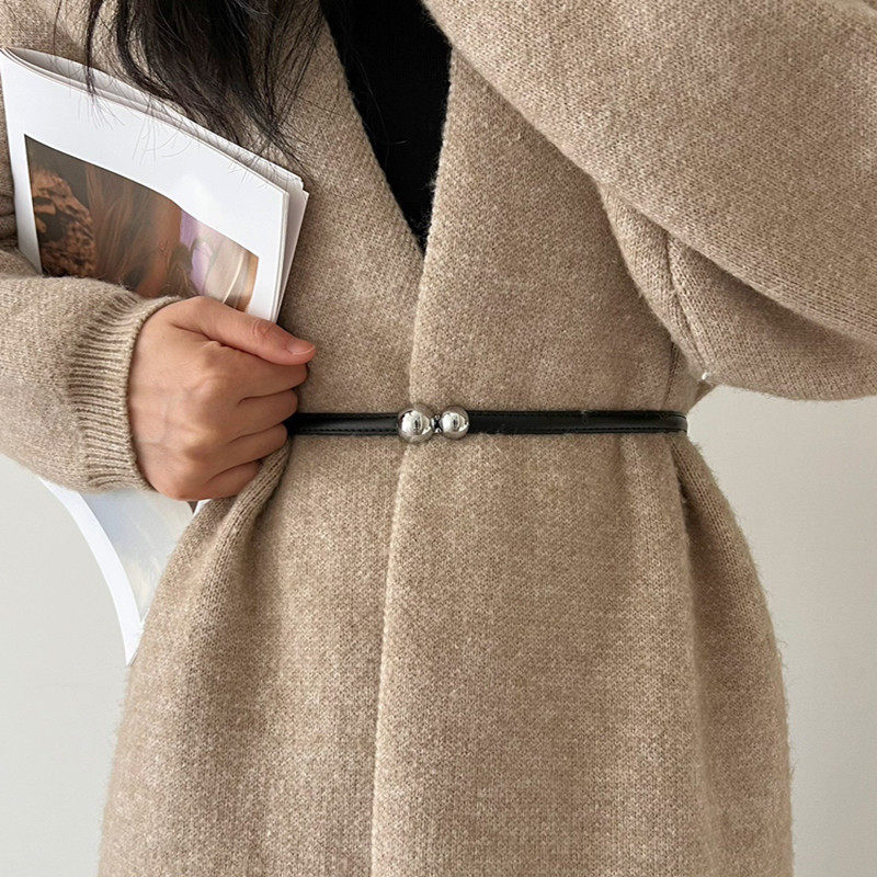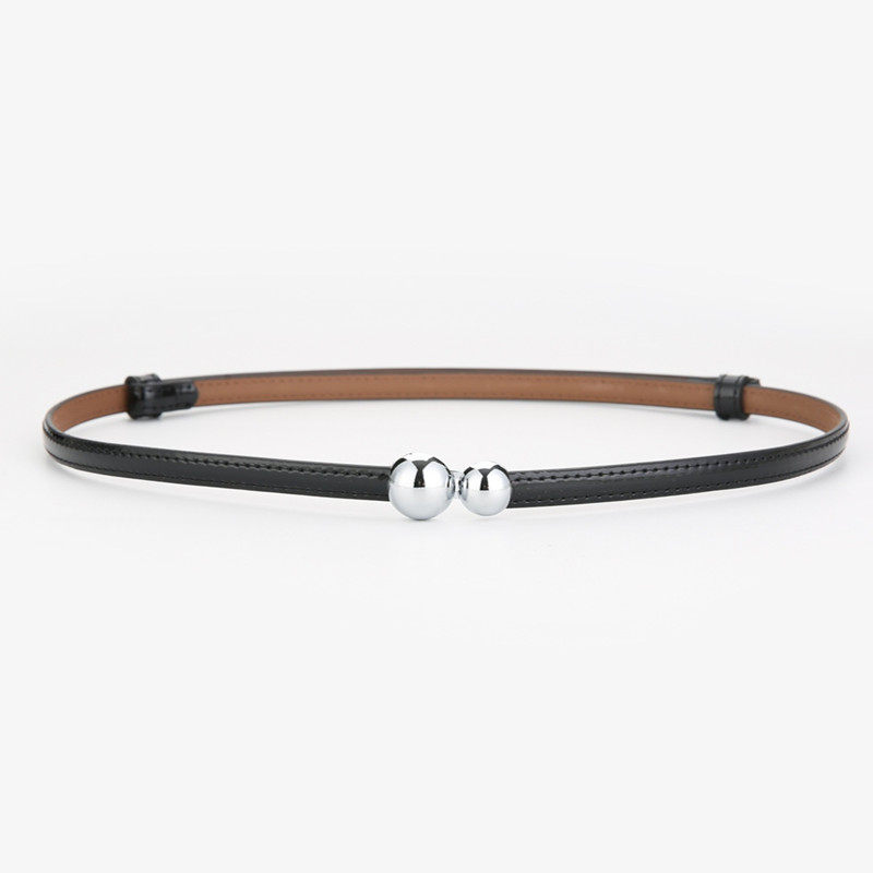 真皮百搭女士细腰带银色对扣装 饰腰封毛衣皮带配连衣裙子收腰腰链