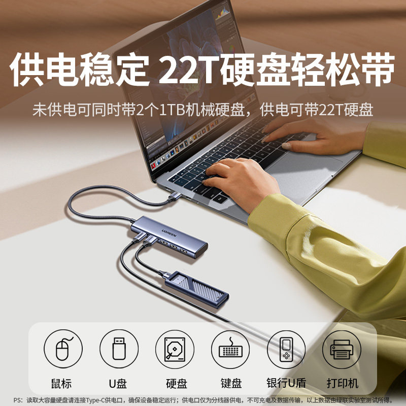 绿联usb拓展坞一分二插头多口3.2分线器hub集线器typec供电转接头转换U盘台式 延长线笔记本电脑多接口扩展器