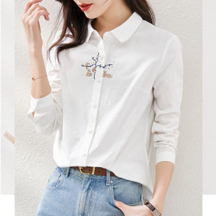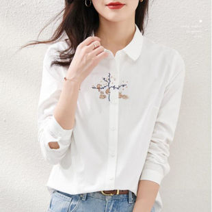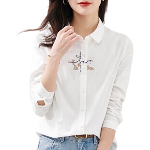 衬衣OL上衣 小清新文艺刺绣宽松百搭长袖 纯棉衬衫 女2025春秋新款