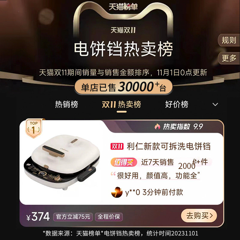 美 电饼铛家用加深加大双面加热薄饼机煎饼不粘锅多功能华夫饼机