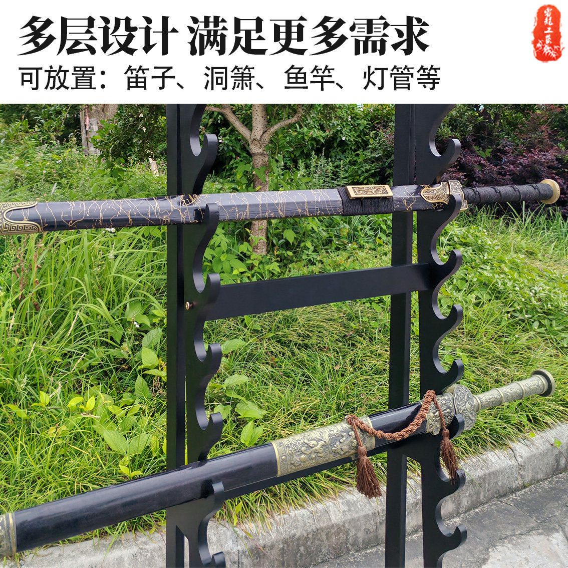 多层兵器展示架落地刀剑架子剑托武器架笛箫架子鱼竿灯管架道具架