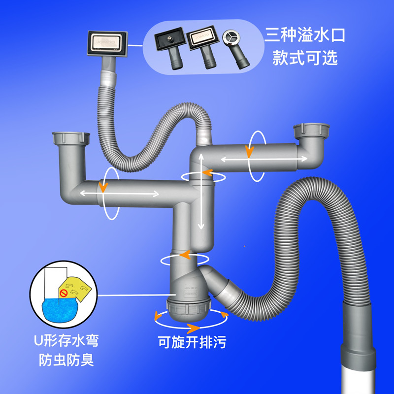 九牧原装 水槽下水管配件厨房洗碗洗菜池排水管下水器通用1.5寸2寸
