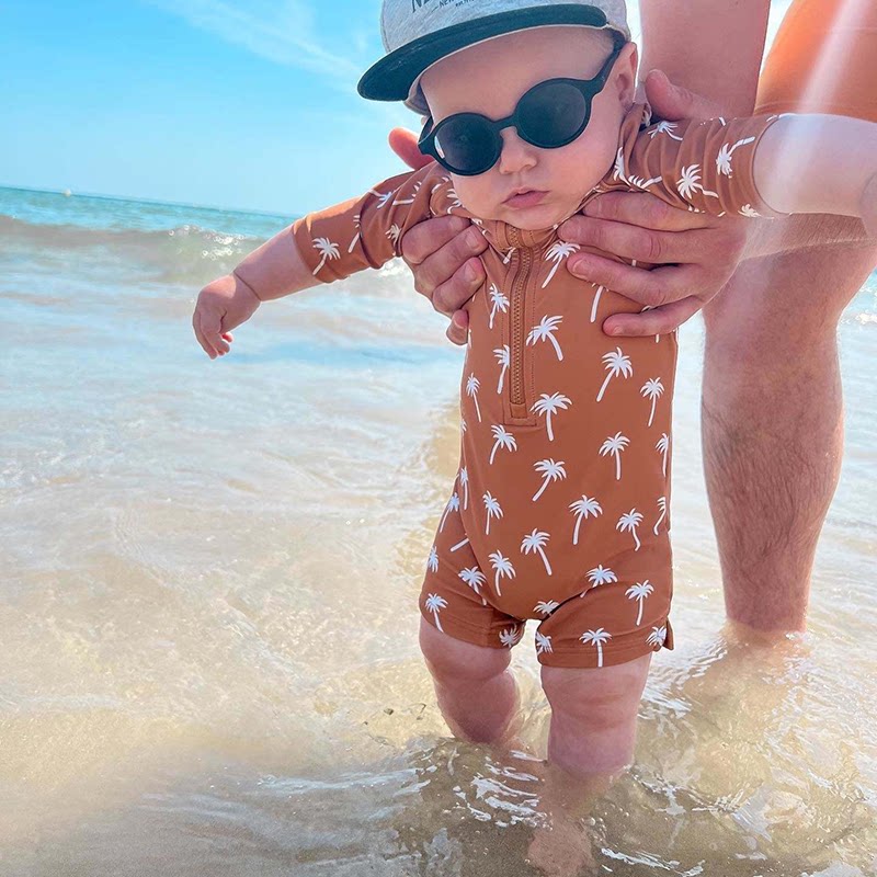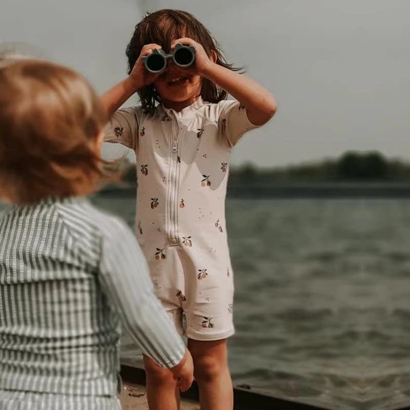 可爱碎花防晒中小童海边度假温泉泳装 儿童连体短袖 泳衣男女童夏季