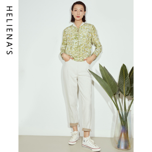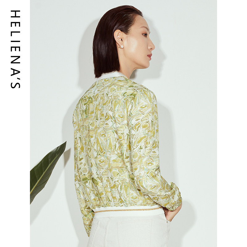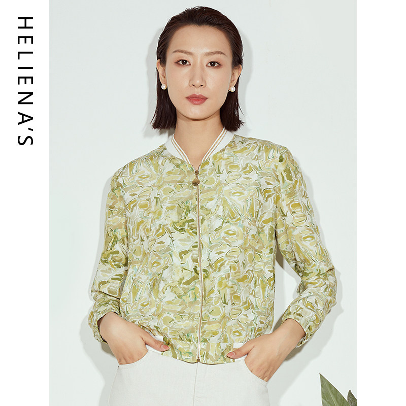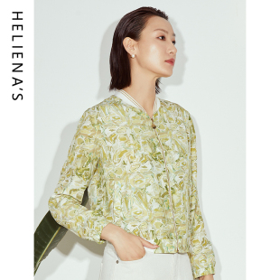 海兰丝叶绿色印花法式 上衣H231JK06 小香风别致独特短外套23年秋季