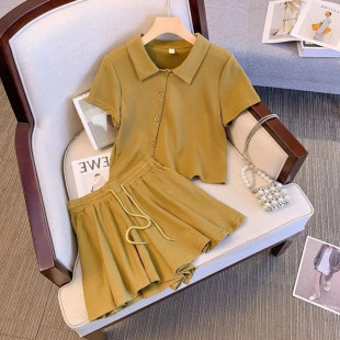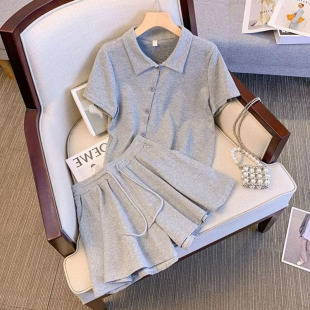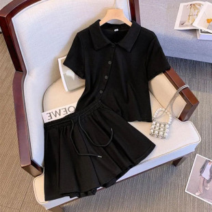 polo领t恤短裤 300斤休闲运动套装 宽松时尚 两件套 女夏季 胖mm大码