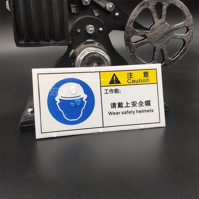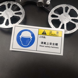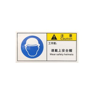 优质艾瑞达请戴上安全帽警示标识车间安全标志贴纸不干胶 B049
