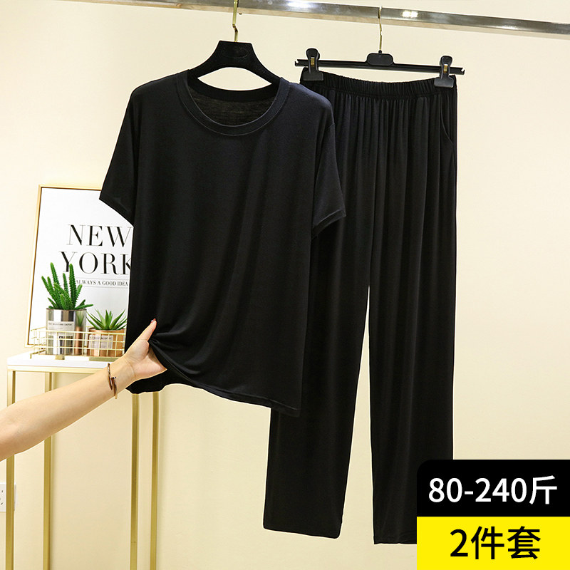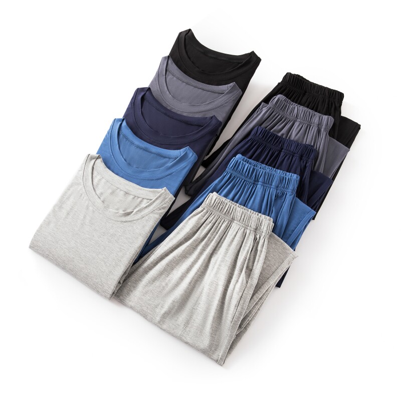 长裤 莫代尔大码 纯色家居服休闲简约圆领短袖 睡衣夏薄款 两件套 男士