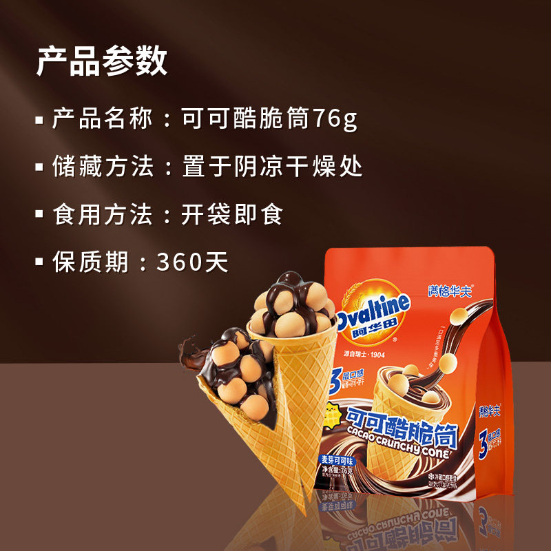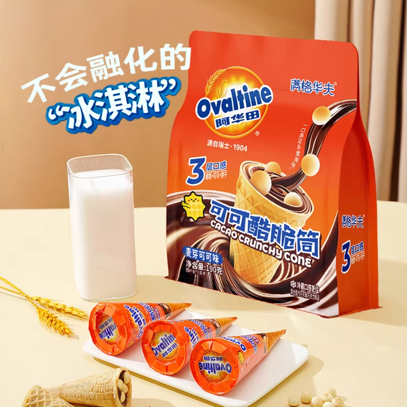 阿华田可可脆筒巧克力儿童糖果零食夹心饼干出游冰淇淋圣诞礼物