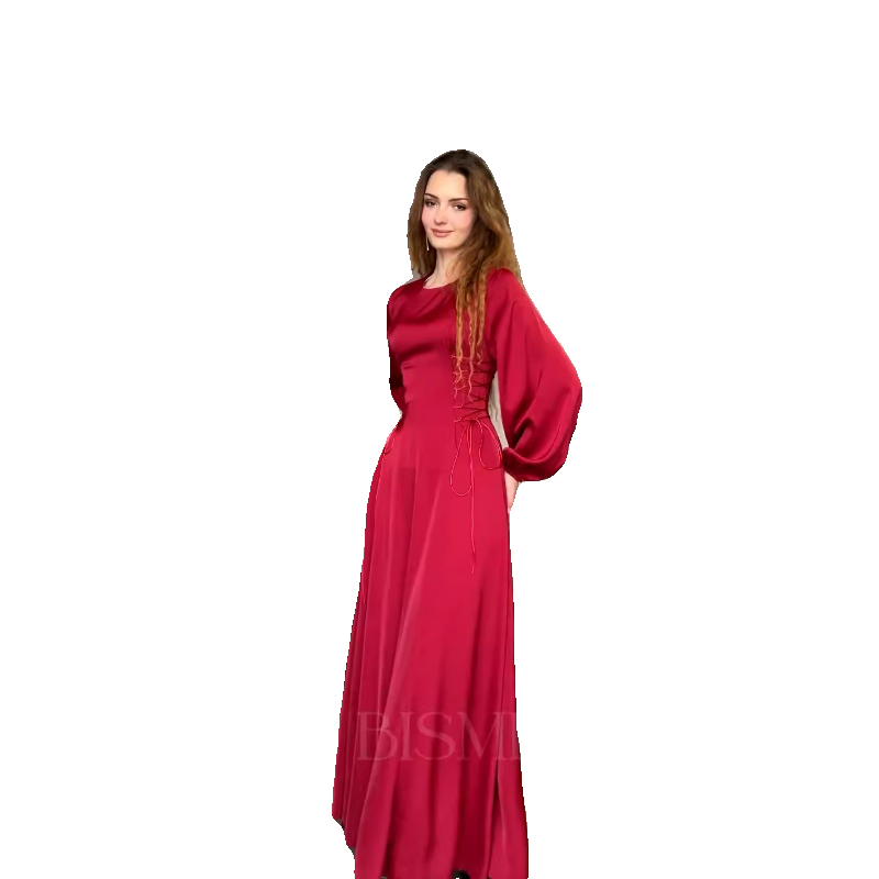 DPLAY2025年秋季 红色连衣裙女鎏光缎面长裙订婚宴会礼服裙子 新款
