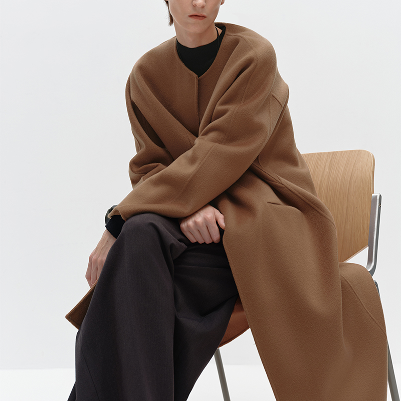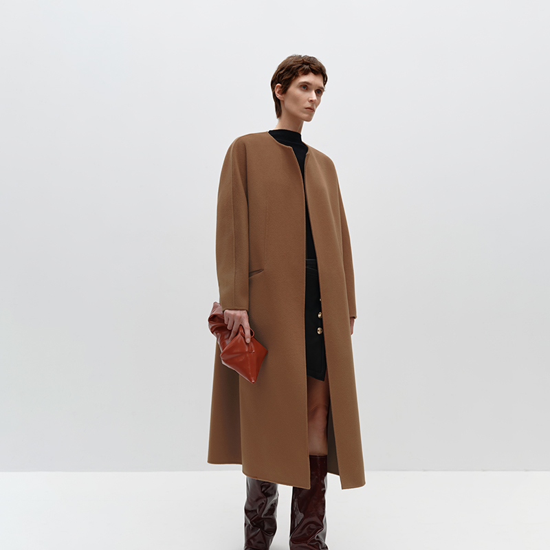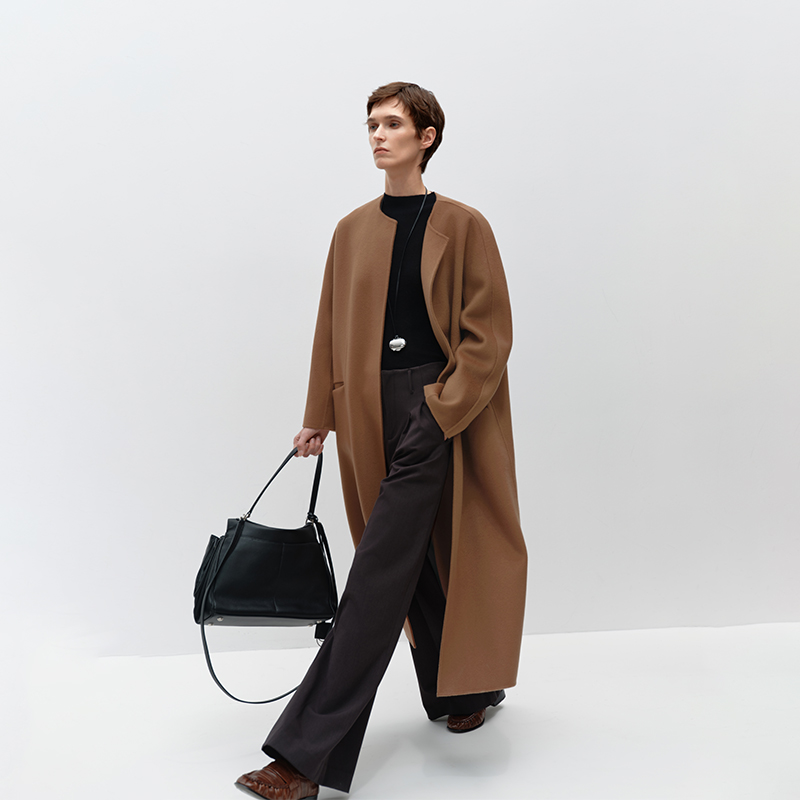 MISS 山羊绒大衣女披风外套 BUCCI圆领中长款